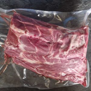 Dieses Produkt ist handverarbeitet in unserer Hausschlachterei und wird nach der Produktion vakuumverpackt und tiefgefroren.